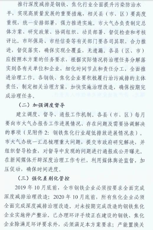 日前,山西臨汾印發《臨汾市2019年鋼鐵、焦化行業深度減排實施方案》。方案要求: