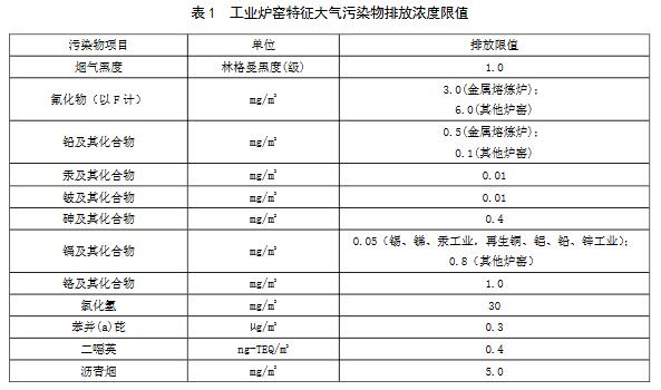 4.1.1新建和現有工業爐窯自本標準實施之日起,執行表1的排放濃度限值。