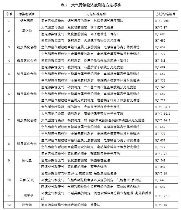 5.1.5對大氣污染物排放濃度的測定采用表2所列的方法標準。本標準發布實施后,有新發布的國家環境監測分析方法標準,其方法適用范圍相同的,也適用于本排放標準對應污染物的測定。