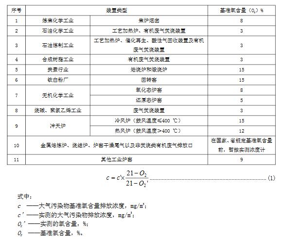5.2大氣污染物基準氧含量排放濃度折算方法實測的大氣污染物排放濃度,應按表3和公式(1)折算為基準氧含量排放濃度。國家和山東省規定了行業單位產品基準排氣量的,按單位產品基準排氣量進行折算。