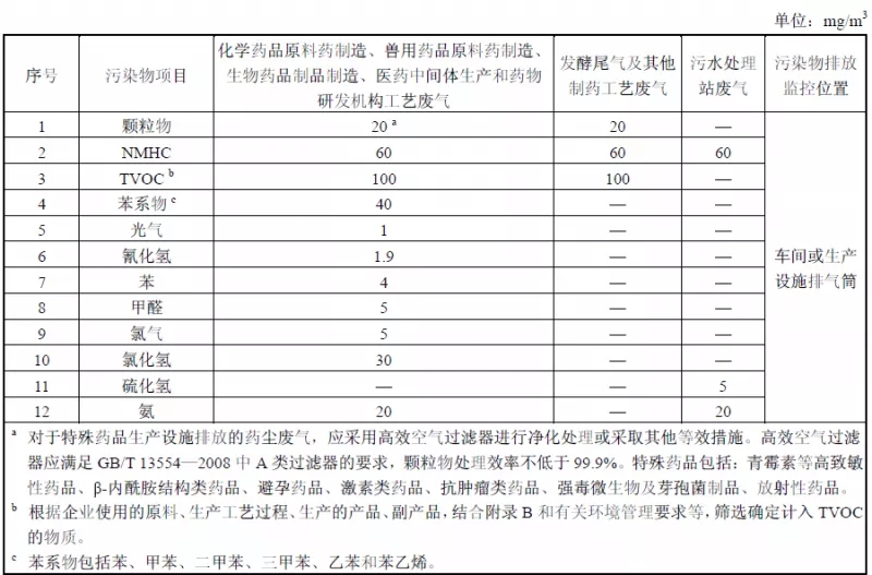 《制藥工業大氣污染物排放標準》