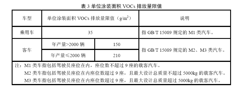 4.2.3單位涂裝面積VOCs排放量 單位涂裝面積VOCs排放量限值應符合表3規(guī)定。