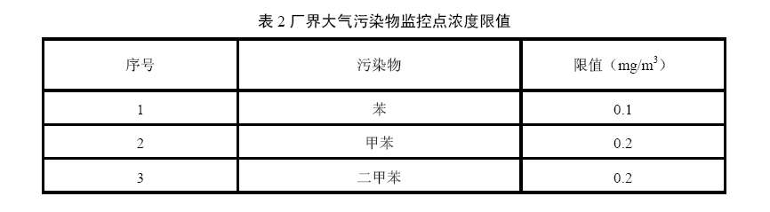 4.2.2廠界大氣污染物監(jiān)控點濃度限值 廠界大氣污染物監(jiān)控點污染物濃度限值應符合表2規(guī)定。
