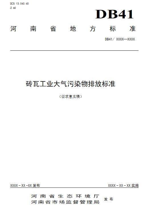 ?日前,河南發布《磚瓦工業大氣污染物排放標準》(征求意見稿)。詳情如下: