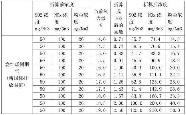 表1排放濃度按不同氧含量折算后的濃度
