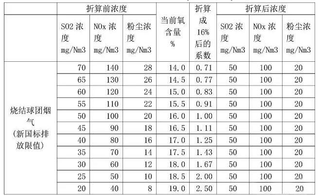 《鋼鐵燒結(jié)、球團(tuán)工業(yè)大氣污染物排放標(biāo)準(zhǔn)》(GB28662-2012)修改單規(guī)定的基準(zhǔn)含氧量,自2017年10月1日起執(zhí)行。根據(jù)編制說明,燒結(jié)和球團(tuán)焙燒煙氣基準(zhǔn)含氧量定為16%。則鋼廠燒結(jié)和球團(tuán)實(shí)測(cè)焙燒煙氣的大氣污染物排放濃度,應(yīng)換算為16%條件下的排放濃度,并以此作為判定排放是否達(dá)標(biāo)的依據(jù)。