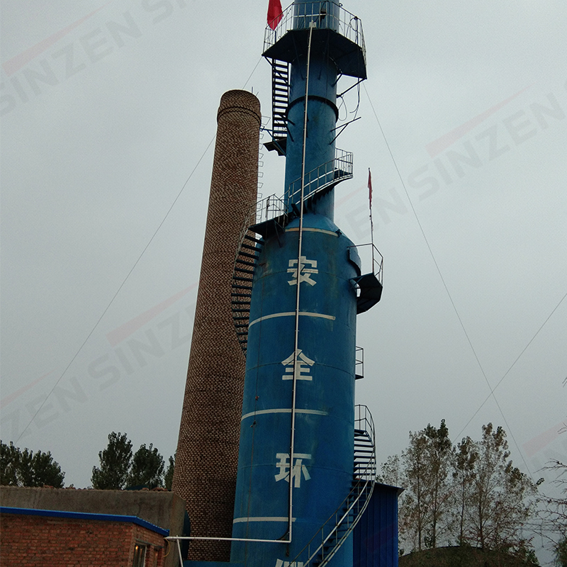 脫硫塔主要由筒體,噴霧裝置、篩板、脫水除霧裝置、溢水孔、清理孔等組成,其工作原理是:含煙塵及硫氧化物的煙氣流通過進(jìn)口煙道進(jìn)入筒體,含有[OH-]離子的堿性水分別從脫硫塔上中下部由螺旋噴嘴噴出,形成與煙氣成逆向的多排高速霧化水幕,增加了煙塵硫氧化物與水的碰撞概率,并充分利用霧化液滴的速度來造成很高的氣液相對(duì)速度,以保證除塵和脫硫效果。同時(shí)氣體經(jīng)過篩板時(shí)對(duì)篩板上的液層產(chǎn)生鼓泡作用,增加了氣液傳質(zhì)的表面積和湍動(dòng)狀態(tài),提高了傳質(zhì)速率,二氧化硫與堿液發(fā)生氣液交換,進(jìn)一步提高了脫硫效果。脫硫生成物隨水流到脫硫塔底部,從溢水孔排走,在筒體底部封底并設(shè)有水封槽以防止煙氣從底部泄漏,備有清理孔便于進(jìn)行筒體底部清理。脫硫后廢水由底部溢流孔排出進(jìn)入沉淀池,沉淀中和再生,循環(huán)使用。凈化后的氣體,通過筒體上部經(jīng)除霧后引出,從而達(dá)到除塵脫硫目的。