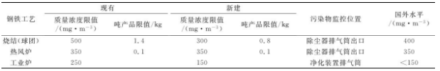 目前我國鋼鐵工業執行的大氣污染物排放標準主要有《煉焦爐大氣污染物排放標準》和《工業爐窯大氣污染物排放標準》,并均已實施了12年。這些排放標準對控制國內鋼鐵工業的污染物排放和推動鋼鐵工業的技術進步發揮了重要作用。