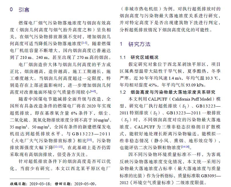 基于超低排放的燃煤電廠煙囪高度優化研究
